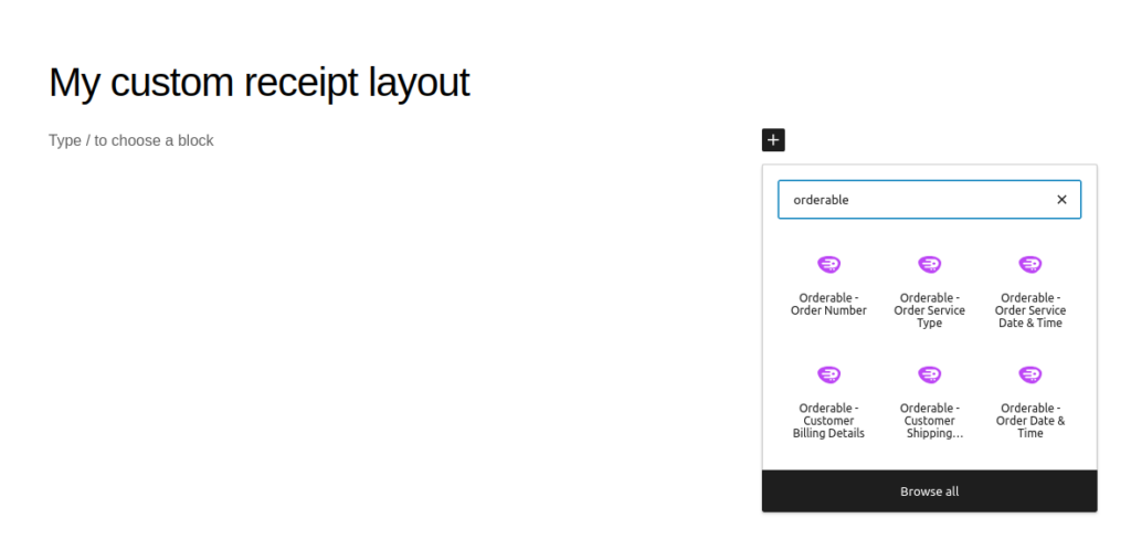 You’ll also be able to customize the order tickets to suit your needs, using some simple Orderable blocks and commonly used WordPress layout blocks.